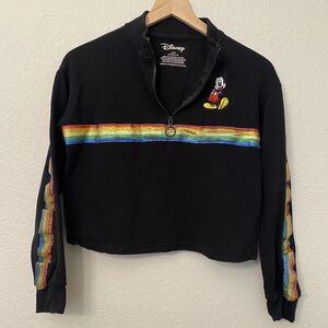 Disney Black Mickey Mouse Rainbow SleevePride 1/4 Zip Cropped Jacket Size Small.