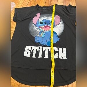 This black short sleeve tee from Disney showcases vibrant Stitch-themed graphics, perfect for fans of the beloved character. Made from comfortable cotton, it features eye-catching designs on the front, adding a playful touch to your casual wardrobe.