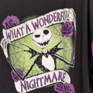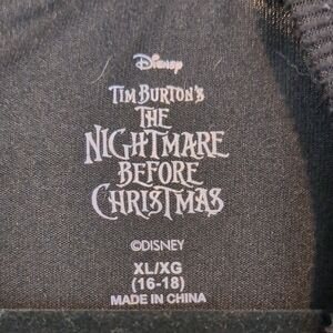 Black Disney Sweater featuring The Nightmare Before Christmas. Purple and gray stripes on the long sleeves. Official Disney product.