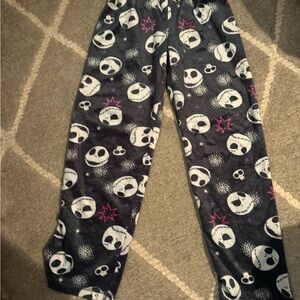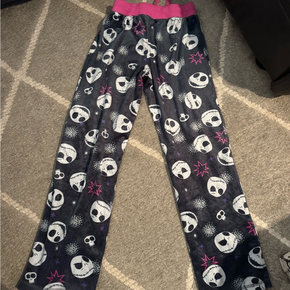 Cozy pajama pants with Tim Burton prints. Features black base with pink accents. Perfect for lounging.