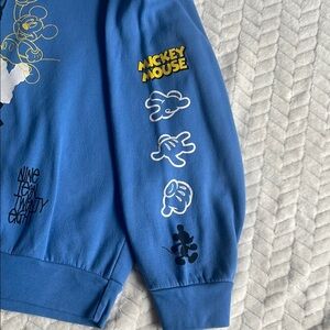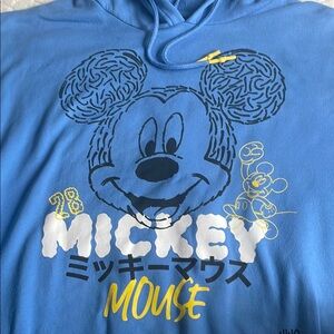 Stylish blue hoodie featuring Mickey Mouse design. Perfect for casual wear.