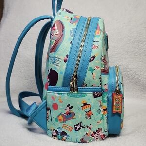 This charming Disney Loungefly showcases a vibrant blue hue adorned with a delightful cartoon pattern. Perfect for adding a touch of whimsy to any outfit, it combines style and practicality for everyday use.