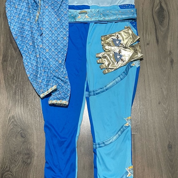 Vibrant blue and gold Descendants the Rise of Red costume. Includes gloves and shall. Perfect for imaginative play.