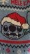 Festive Disney sweater featuring Stitch in a Santa hat. Blue base with red and white holiday patterns. Perfect for the holiday season.