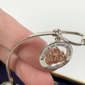 Disney Bracelet Princess Crown Believe in Your Dreams Charm Pendent Faux Diamond Silver Plated Pink Rose Gold Crown LA Rock