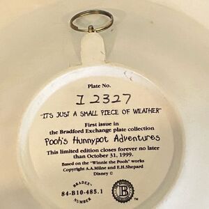 Vtg Disney Bradford Exchange Winnie The Pooh Honey Pot Adventure Collector Plate. Plate no 12327 1st issue. No box 100 acre wood