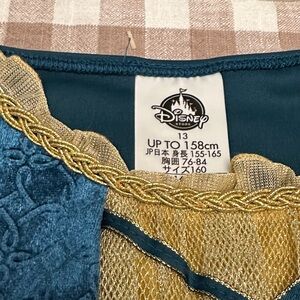 Charming Disney costume in blue and gold. Features elegant patterns and a matching belt. Ideal for Halloween fun.