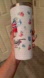 This stainless steel tumbler has a Minnie Mouse Icon made up of red, blue and white flowers, and a Union Jack bow. EUC.
