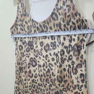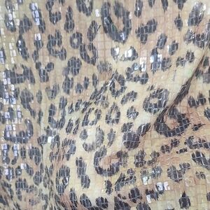 This stylish Disney tank top features a fitted silhouette with a classic sleeveless design. The top showcases a striking leopard print in shades of brown and black, offering a bold and fashionable look. Its stretchy fabric ensures a comfortable fit, making it a versatile addition to any wardrobe.