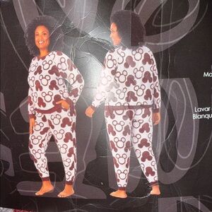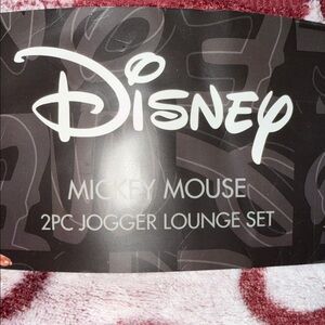 Soft Disney jogger set with Mickey Mouse design. Features burgundy and white colors. Ideal for lounging.