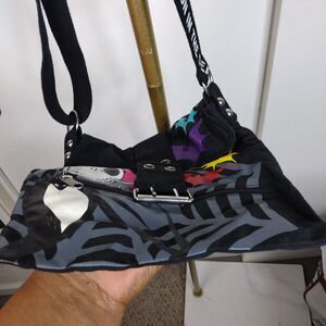 This Disney Burton The Nightmare Before Christmas Jack Skellington cross body bag is a medium-sized shoulder bag featuring the iconic character from the beloved franchise. The multicolor design with black accents adds a touch of whimsy to the handbag, making it a perfect accessory for fans of the Nightmare Before Christmas. Made in China, this officially licensed Disney product is a must-have for collectors and fans of the Countdown to Halloween at Disney Land. Ideal for carrying everyday essentials, this unique cross body bag is sure to stand out and showcase your love for all things Disney.