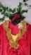 Vibrant pirate costume with red and yellow design. Features ruffled sleeves and playful details. Perfect for Halloween and dress-up.