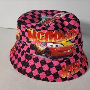 Disney Cars Bucket Hat Lightning McQueen 95 Pink Checkered Kids