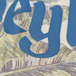 Disney casual button down shirt. Features a leaf pattern. Cream, green, and purple colors. Comfortable and stylish. This thing is awesome. high quality Disney made Spirit jersey us size large. very very cool! awesome leaf pattern. awesome material with nice blue raised letters across the back stating your love for Disneyland, resorts and up front. it has the Disneyland and Mickey symbol up front. big buttons down the center. very very nice overall condition except for in one photo right? beside the Disney tag, there's a small small hole or snag that could easily be fixed or repaired or leave it. I believe it will be fine. it's covered up on the back side by the collar. no issue there. I just wanted to be honest..