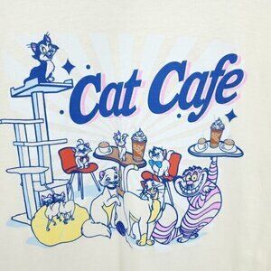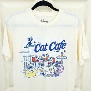 Disney Cat Cafe Graphic Short Sleeve T-Shirt M Cream, GUC with minimal wear, no flaws.