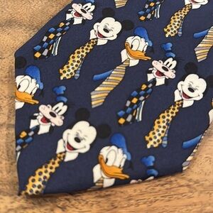 Disney Characters Silk Tie Mickey Donald Goofy Tie Navy