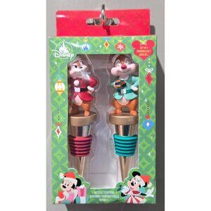 Disney Chip 'n Dale Holiday Christmas Themed 2 Gold Bottle Stopper Set