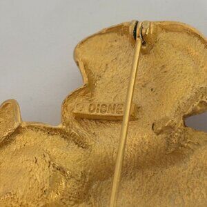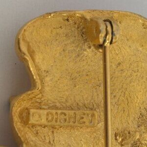 Pooh is featured in a festive Christmas theme, crafted with vibrant enamel colors, small clear rhinestones and a gold-tone finish. Its whimsical design adds a touch of nostalgia and holiday cheer to any outfit, making it a charming collectible for Disney enthusiasts.