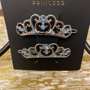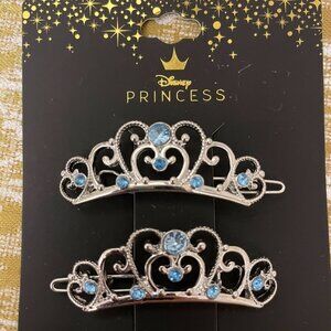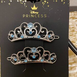 Inspired by Cinderella, these barrettes are fashioned into a rhinestone-studded crown in Cinderella’s signature blue with silver swirls reminiscent of her Bippity Boppity Beautiful carriage. Perfect for any Disney Princess (or fan).