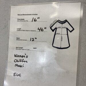Measurements (laid flat): Chest width (pit to pit) 16", Waist 12", Length (center of neck seam to bottom) 46"