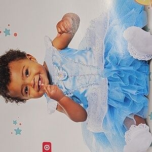 Disney Baby Sparkling Light Blue Satin & Tulle Princess Dress Costume for Fall Festival, Halloween Party, Trick or Treat Or Any Costume Party. Satin Top with Layered Ruffle Tulle Skirt. Silver & Blue Metallic Sparkles & Embellishments. Tights Not Included. So Stinkin Cute!