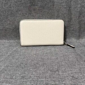 Whimsical and rare, this limited edition ivory leather wallet features an adorable Dumbo print and Coach logo accents. With a zip-around accordion style, it includes: