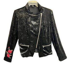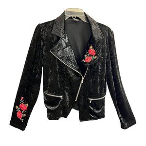 Disney Coco Junior Teen XL Moto Jacket Black Velvet Velour Rose Embroidered