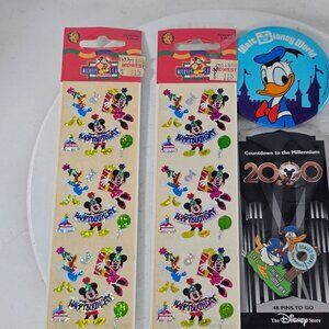 Disney Collectible Bundle Donald Duck Pin Disney World Button Birthday Stickers