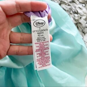 This is a gently used Disney Collection Ariel Girls Costume in Size 2. In excellent condition. Minimal wear. Some fading on plastic shell on front (see pic).