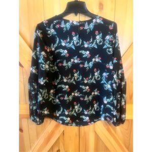 Disney Collection by Lauren Conrad Blouse, Snow White Size Small sheer black floral red green sequence pit to pit 18.5” length 27” (3805)