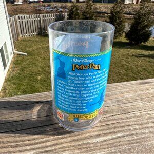 Details: Plastic Peter Pan Glass that was part of a collector series by Burger King. This collector series was available in 1994 and featured plastic glasses with characters from popular Disney animated movies.