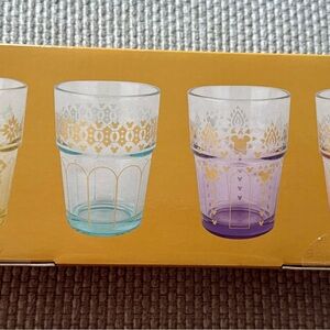 Set of four patterned set in vibrant colors. Perfect for adding a pop of color to your table setting. Disney collectors dream! From Japan Disney