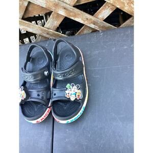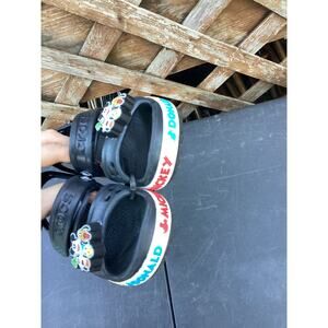 Disney Crocs Kids Black w/ With Rainbow Goofy Mickey Pluto Donald