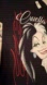 Unisex black T Shirt with a large portrait of Cruella de Vil from 101 Dalmatians grinning evilly, and red outlines of flames behind her. It says "Cruella" in script above her.