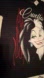 Unisex black T Shirt with a large portrait of Cruella de Vil from 101 Dalmatians grinning evilly, and red outlines of flames behind her. It says "Cruella" in script above her. 100% cotton Wash cold; dry low