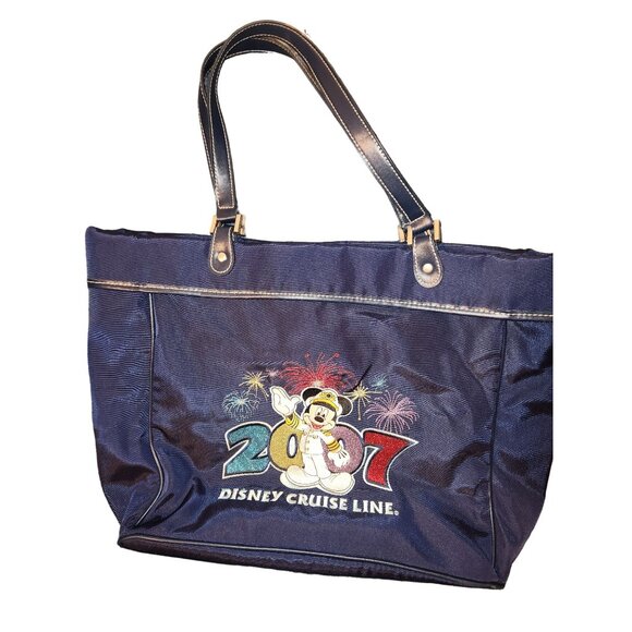 This Disney Cruise Line tote bag features a 2007 design with Mickey Mouse. Ideal for travel or everyday use. Approx 14 in x 12 in. Made of heavy material