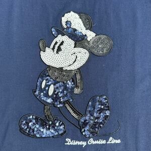 Disney Cruise Line DCL Women’s Captain Mickey Mouse Sequined Tee Shirt Size M