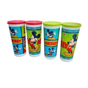 VTG Tupperware Disney Mickey Mouse Cups Glasses W/Lids - QTY 4
