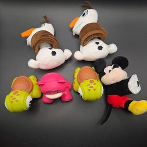 Disney Cutie Cuff and Squish 'Ums Lot of 6 Olaf Mickey Squirt Lotso plus the containers they came in.