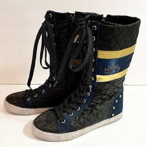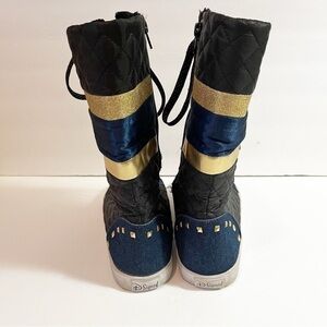 Disney D-Signed Girls Boots Blue Crown Sz 5 Black Sparkle Lace Tall Descendants