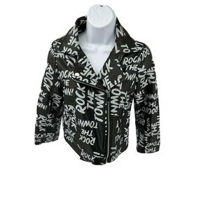 Disney D-Signed Girls Large Black Moto Faux Leather Jacket Rock the Town
