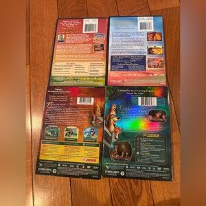 Four Disney DVD titles featuring classic animated films. Colorful cover art with vibrant character illustrations. Great addition to a family movie collection. Includes multiple Lion King and Fox and the Hound releases.