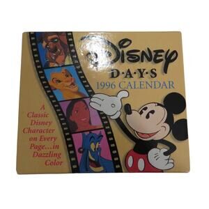 Disney Days 1996 calendar. Vintage daily desk calendar. Vintage collectible nostalgia. Features classic Disney characters and vibrant illustrations for each day of the year. Perfect nostalgic piece for collectors, scrapbookers, or fans of vintage Disney. Full color artwork each day.