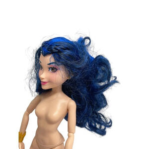 This Disney Descendants EVIE Nude Doll Isle of the Lost Doll Articulated Arms Legs is a must-have for any fan of the franchise. The doll stands at 11 inches and has wavy blue hair. It comes with articulated arms and legs, making it perfect for playtime and display.