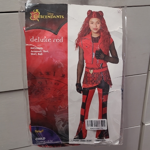 Vibrant Disney Descendants costume. Includes jumpsuit, vest, skirt, and belt. Perfect for Halloween fun.