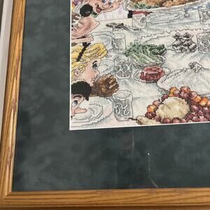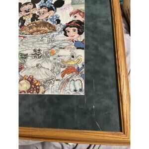 Disney Dinner w/ Friends Thanksgiving Dnner Rockwell Framed Cross Stitch Picture