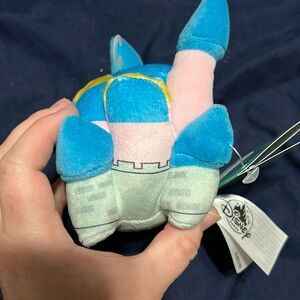 Delight your child with this adorable castle-themed plush toy. Featuring vibrant blue and pink colors, it's perfect for imaginative play and cuddling. A charming addition to any toy collection.