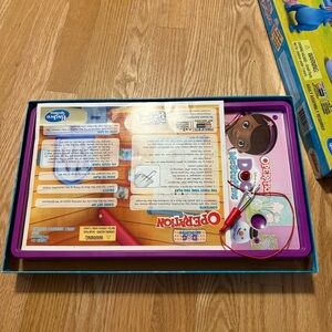 Join Doc McStuffins in this fun and colorful Operation game. Perfect for kids who love interactive play. Features vibrant blue and purple characters. A great addition to any game collection.