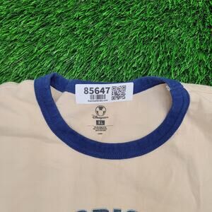 Showcase your love for Disney with this Donald Duck ringer T-shirt in beige and blue. Size XL (24x27 inches). A must-have for fans of the classic character. Shop now!