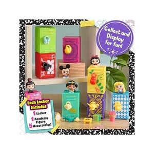 Brand new in box Disney Doorables Academy Surprise Locker 3-Pack, perfect for kids ages 5 and up. Each set includes 3 mini lockers with 3 mystery Doorables figures, 3 locks, themed accessories, stickers, book-shaped erasers, and a checklist. Characters may include Mirabel, Minnie, Snow White, Winnie the Pooh, and more! Lockers are stackable for creative play.